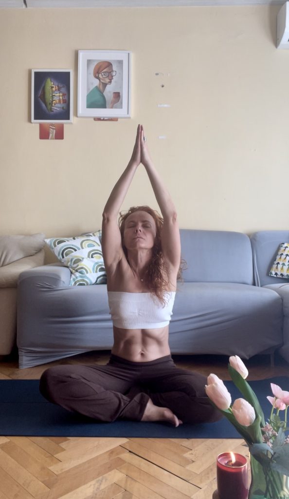 Position the Arms: Raise your arms upward, bringing them together over your head (as the tree grows upward) or place your hands in a prayer position in front of your chest.